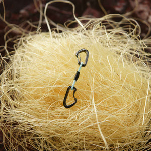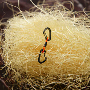 Alright, so these tiny quickdraws? They're not just for show! The little sling connecting the carabiners? Totally changeable! You can swap it out for whatever color you're feeling. Seriously, Monday blues? Blue sling. Feeling peachy on Friday? Go orange! You could even do a whole week's worth of moods!